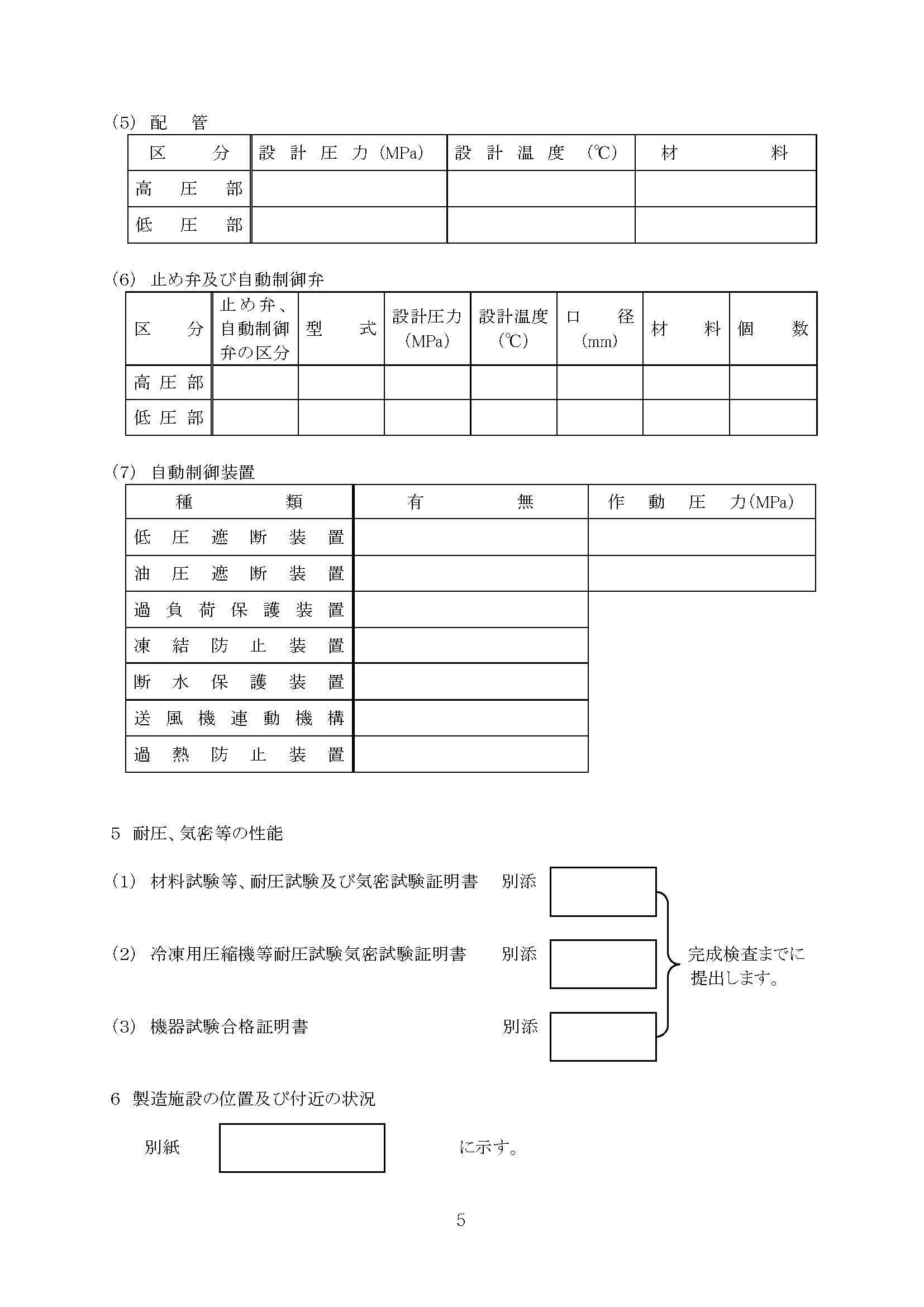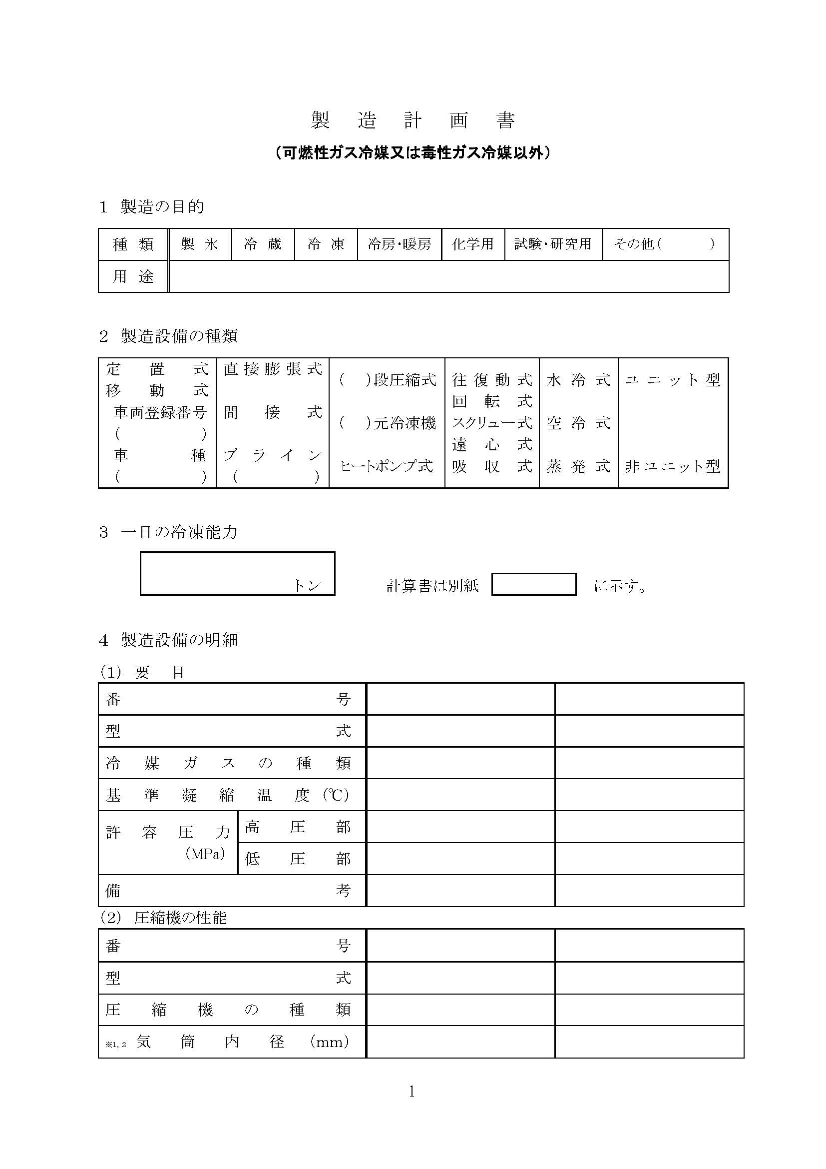 高圧ガス製造許可に係わる製造計画書 (ⅰ)可燃性ガス冷媒又は毒性ガス冷媒以外