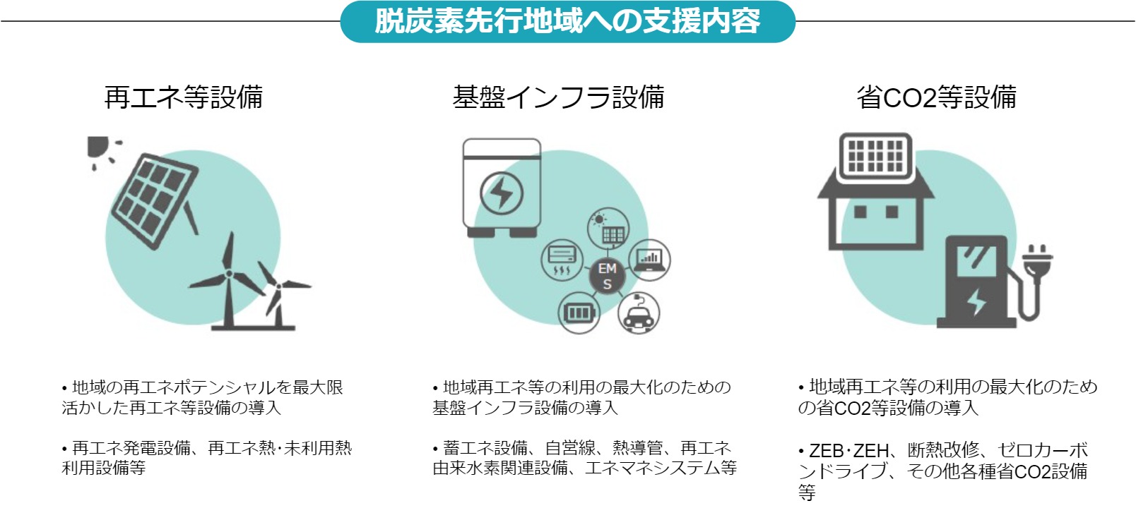 ネを活用した「地域脱炭素化促遣事棄」を推進する仕組みを創設。地域の合意形成を円滑化しつつ、地域の脱